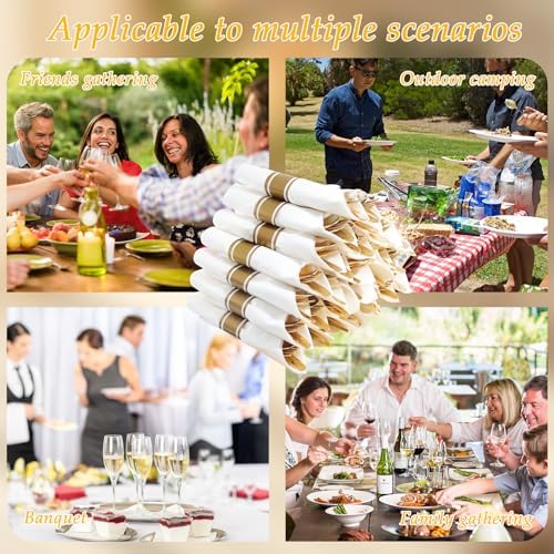 – **Convenient Pre-Rolled Napkins**: Each piece of cutlery is neatly wrapped with a high-quality napkin, ensuring a clean and polished presentation. No more fussing with messy setups!